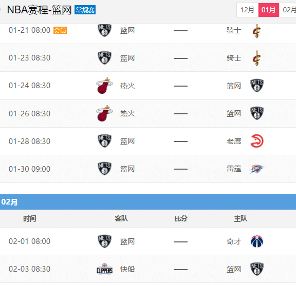 篮网赛程一览!欧文回归三巨头有望豪取11连胜,战快船成大考
