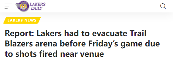 昨天湖人客场对阵开拓者之前,由于球馆附近发生枪击事件,湖人全队被迫撤离摩达中心,球馆在下午被暂短封锁,据当地警方透露,一男一女在球馆售票处的卫生间发生口角,男子开枪后将自己困在卫生间,女子毫发无损地逃离现场,最终男子被警方拘留。