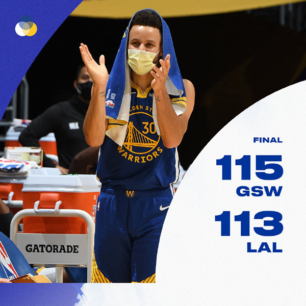 勇士115-113逆转湖人 库里26+7 詹姆斯19+5