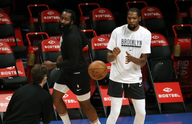 今天比赛篮网开局打得并不是很好,杜兰特这边上半场的手感并不是很好,而哈登因为是首秀与队友的配合出现了不少的失误,他更多的是持球为队友送助攻,下半场的比赛开始后哈登和杜兰特开始了自己的表演,第三节两人轰下了23分,杜兰特抡完哈登抡,两人接连上演得分表演。末节比赛正是凭借着哈登和杜兰特的出色发挥,篮网最终成功拿下了比赛 。