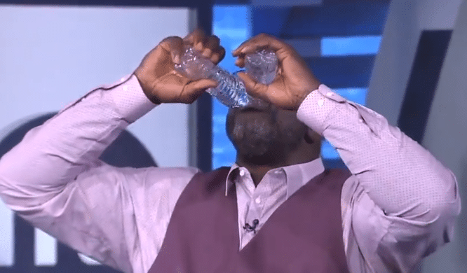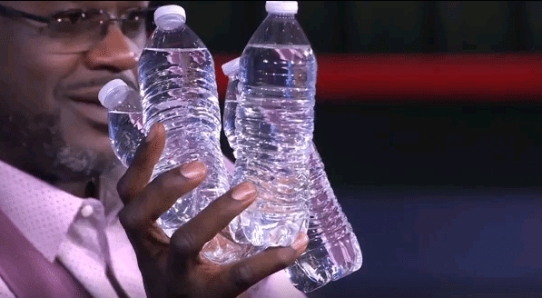 很快奥尼尔在《TNT》演播室中也进行了挑战,他的脚下有很多瓶水,他先是轻松的单手抓3瓶水,随后又从下面拿起一瓶水,一只手握着4瓶水。虽然觉得有些不尽兴的奥尼尔打开两瓶水,抬头直接往嘴里送,就像酒局中喝啤酒一样,当然奥尼尔是两瓶水同时喝的,难度毫无疑问更大。喝完之后的奥尼尔也笑了,巴克利等人也都笑得不行了。