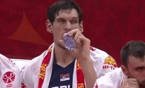 要说把水当作口服液喝,还得说是大博班,他在2019年中国男篮世界杯的赛场上不仅得到了第一分,还因为一张图火了,他在场边一边看比赛,一边喝水,水瓶在他的手中真的和口服液一样,这样说并不夸张。同时博班和诺维茨基的手对比,诺天王在这点上真的是败下阵来,两人之间的差距也是很大的。