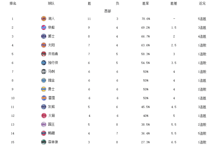 NBA东西部排名!湖人绿军5连胜领跑,雄鹿快船次席,勇士跌出前8