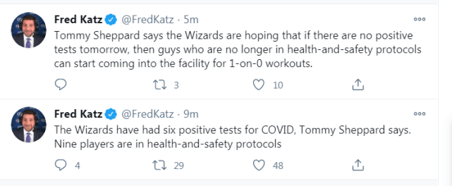 来源:JRS直播网01-16 10:14JRS直播网讯 北京时间1月16日,奇才总经理汤米-谢泼德在采访中透露了一个坏消息,奇才目前已经有6名球员新冠检测结果呈阳性,9名球员处于健康安全协议的隔离下。