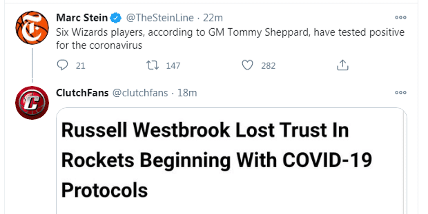 美媒转发了韦斯布鲁克之前的言论,由于火箭在奥兰多园区对防疫规定的执行不力,这位球星开始失去对火箭的信任。没想到,一笔交易过后,韦少又来到了目前疫情问题最严重的奇才。