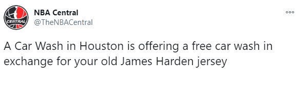 不久前,休斯敦当地某洗车店推出一项活动,用旧的哈登球衣可以换一次免费洗车,一美女拿哈登火箭13号球衣到洗车店,只见洗车员拿过球衣后直接把哈登的球衣丢进垃圾桶;如此视频瞬间引热议,哈登球迷被仍旧垃圾桶,由此可以看出火箭球迷的心情。