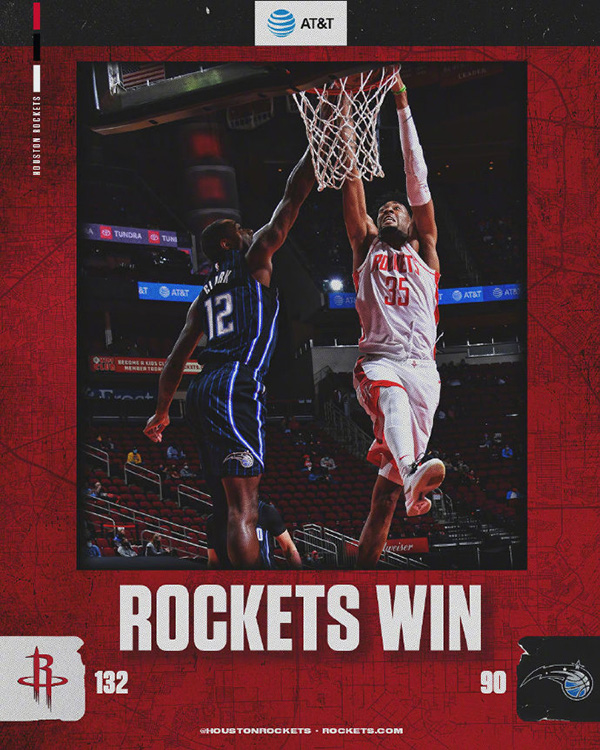 火箭132-90轻取魔术 伍德22+15 哈登三节15+5+13