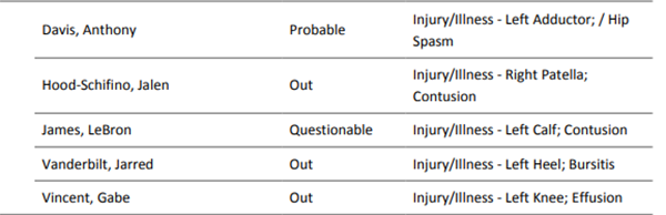 湖人最新伤情:詹姆斯出战存疑 文森特因左膝积液缺席两周