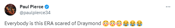 奥尼尔模仿格林锁喉戈贝尔,直接在节目中锁喉巴克利,引得大家哈哈大笑;凯尔特人名宿皮尔斯发推写道:在这个时代,每个人都害怕德拉蒙德。
