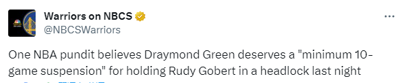 NBA专家Michael Wilbon在节目中表示:联盟大概率会对追梦做出禁赛3场的处罚,而我可能会禁他5场。你会看到大部分类似的比赛联盟禁赛都会在2-3场。