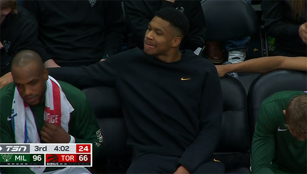 下半场,利拉德外线继续开火以及助攻比斯利,9分03秒,利拉德更是无视防守直接轰进超远logo三分,字母哥站起来为利指导庆祝,雄鹿火力不减,83-53足足领先到30分,之后猛龙反扑,利拉德造杀伤以及强硬突破上篮,三节轰下37分12助攻,雄鹿领先21分。