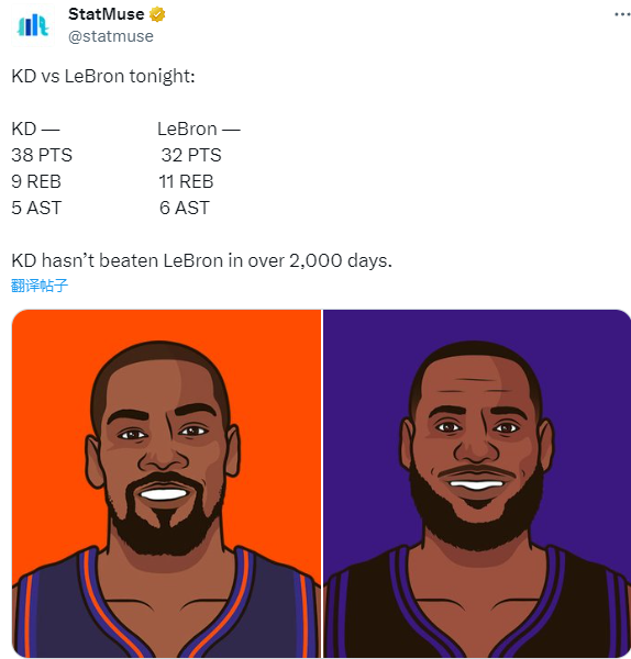 本赛季湖人已经双杀太阳,赛季主场和客场首胜都是击败太阳,与此同时,詹姆斯连续击败杜兰特——10月27日湖人主场击败太阳,詹姆斯21分8篮板9助攻,杜兰特空砍39分11篮板;11月11日,湖人客场逆转太阳,詹姆斯32分11篮板6助攻,杜兰特空砍38分9篮板。