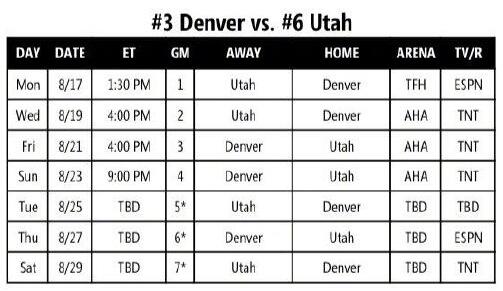 掘金vs爵士季后赛首轮赛程出炉:8月18号凌晨1点30分开战!