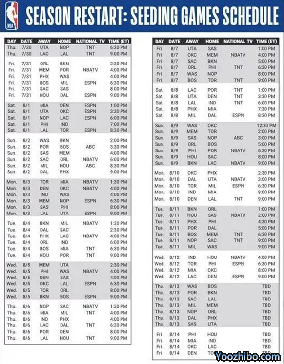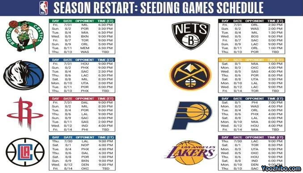 8月1日 魔术-篮网,灰熊-开拓者,太阳-奇才,凯尔特人-雄鹿,国王-马刺,火箭-独行侠;