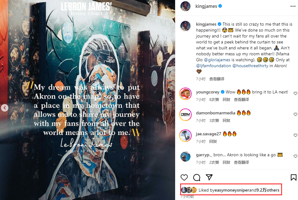 詹姆斯更新社媒宣传自己的博物馆,晒照并且配文写道:这件事的发生仍然让我感觉无比疯狂!我们在这趟旅程中做到了太多,我等不及想让我来自全世界各地的球迷深入幕后,看看我们所建立的东西,以及一切开始的地方。大家最好别搞乱我的房间!(格洛丽亚妈妈在盯着呢),仅仅只在阿克伦330小屋。