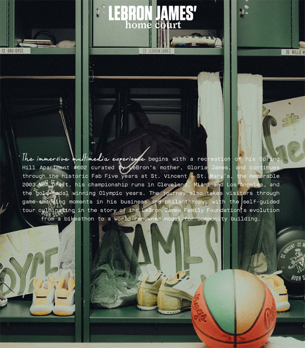 该博物馆将展览詹姆斯童年时期所生活的一间公寓(复刻版),詹姆斯在高中时期获得的一系列奖杯等荣誉,墙壁上画着很多詹姆斯在赛场上的经典画面;除了纪念詹姆斯在NBA取得的历史性成就外,博物馆还将重点展示他在奥运会上为美国男篮取得的成就,以及他在商业和慈善事业方面做出的重大努力。