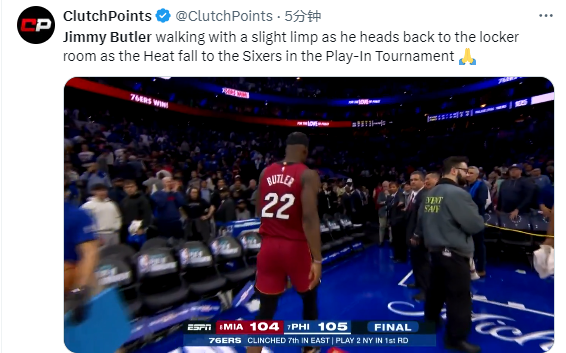 东部第7争夺战,76人开场12-4领先8分,恩比德两次造阿德巴约犯规;随后热火反扑追分,巴特勒抢断恩比德后反击扣篮,哈里斯和洛瑞得分止血,可76人突然陷入得分荒,热火一波8-0反超比分,第一节打完热火23-22领先1分,首节还剩1.5秒,巴特勒的膝盖被撞伤,莱利和莫宁都十分担忧,所幸他的伤势无大碍,继续带伤比赛。
