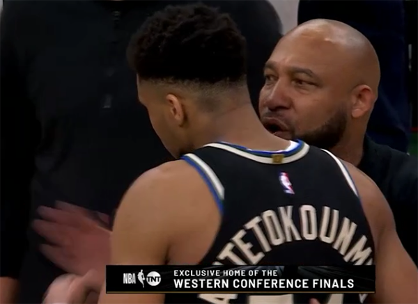 关键时刻,字母哥罚球时,詹姆斯站在场边默默读秒,数了9秒后字母哥罚球打铁;赛后詹姆斯第一时间离场返回更衣室;字母哥与浓眉以及哈姆等人拥抱。