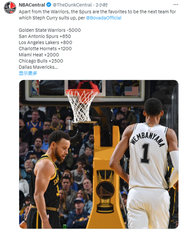 文班亚马透露有人想和他联手,库里下家赔率马刺第二