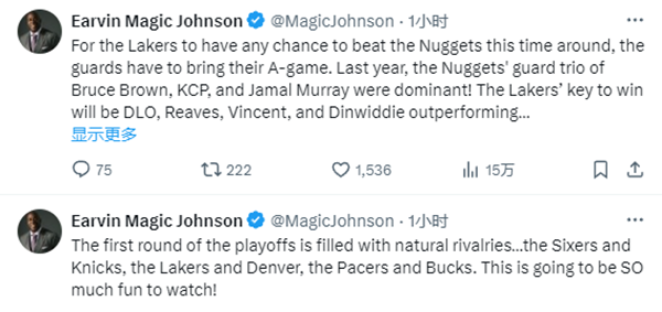 ESPN专家团11人都预测湖人被掘金淘汰出局,湖人能否打脸专家团,湖人名宿魔术师约翰逊支招:湖人要想在这次系列赛中击败掘金,后卫们必须拿出最佳状态。上赛季,掘金的后卫布鲁斯-布朗、KCP 和贾马尔-穆雷三人组的表现非常出色!湖人获胜的关键将是拉塞尔、里夫斯、文森特和丁威迪的表现要优于穆雷、KCP和布劳恩。