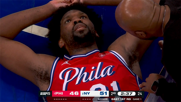 来源:JRS直播网04-21 13:01JRS直播网讯 北京时间4月21日,NBA季后赛正式开打,在76人和尼克斯系列赛G1比赛中,恩比德扣伤膝盖轰然倒下,费城惨遭重创,大帝又伤了,所幸伤势无大碍,下半场继续比赛。