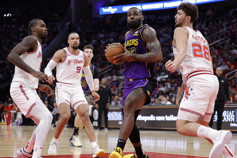 末节,詹姆斯等主力都不再上场,湖人和火箭都早早换上替补阵容,比赛彻底变成练兵,詹姆斯坐在替补席,一脸无奈和落寞。