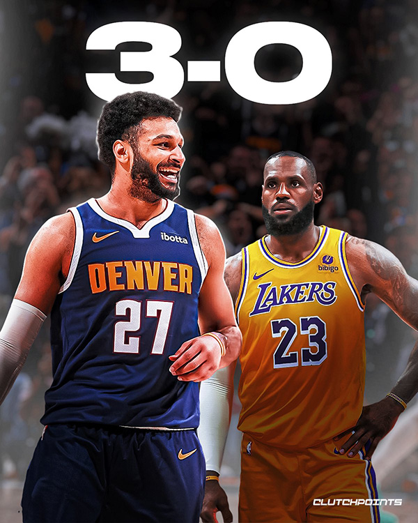 根据赛程,湖人将在明天上午8点30分再战掘金,总比分0-3落后,湖人面对掘金已经遭遇11连败;若湖人G4再输球的话,他们就会直接被横扫出局。