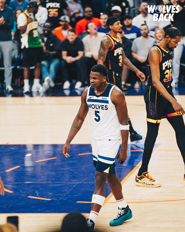 G4一战,爱德华兹上半场出战19分钟,8投1中、三分6中1仅仅拿到9分4篮板3助攻,不过森林狼半场仅仅落后5分,而且杜兰特和布克半场合砍39分;下半场,爱德华兹迎来爆发,第三节8中6独砍15分,单节命中4记三分;末节,华子更是杀红眼,三分稳准狠,关键时刻突破隔扣杜兰特,最后19秒扣篮杀死比赛,做出4-0横扫的霸气手势。