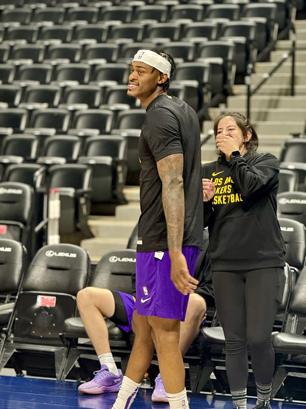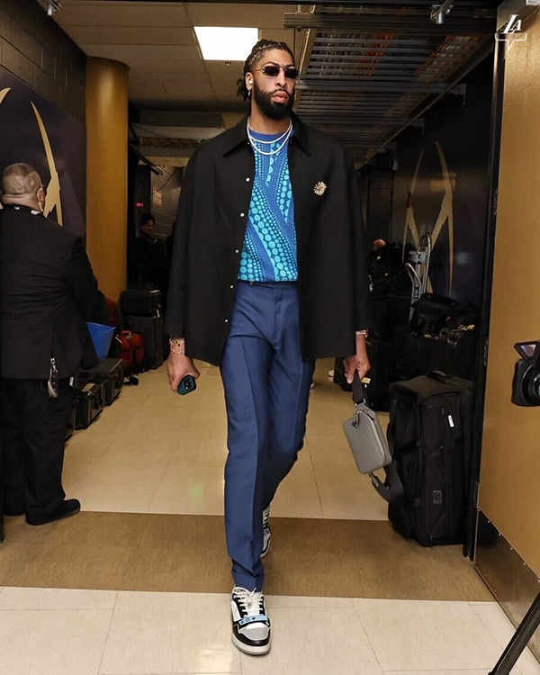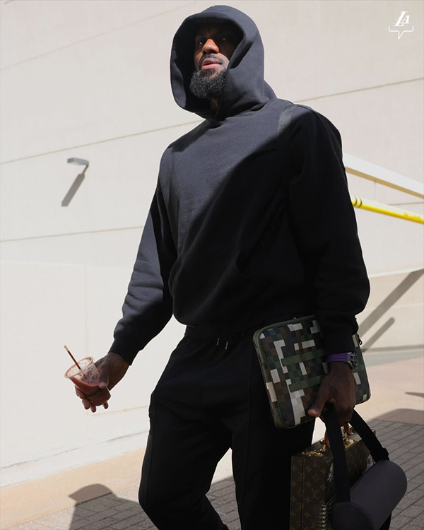 G4生死战,詹姆斯、浓眉、拉塞尔和里夫斯带领湖人捍卫主场,拒绝被横扫,把总比分改写成1-3;G5赛前,詹姆斯拿着饮料入场,浓眉戴着墨镜霸气十足,出战状态都已升级为可以出战。