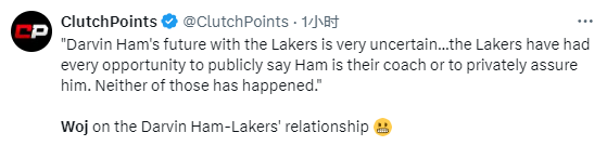 名记Woj在节目中谈到哈姆的未来,他表示:哈姆在湖人队的未来非常不确定,湖人队有充分的机会公开宣布哈姆将继续作为他们的教练,或者私下向他保证,但这些都没有发生。