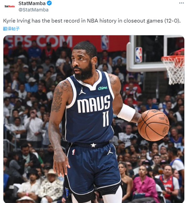 独行侠总比分3-2领先快船,据统计,季后赛生涯至今,欧文手握赛点时的总战绩为12胜0负,这是NBA历史最好的战绩,换言之,在系列赛手握赛点时,欧文从未输过,究竟是欧文延续赢球定律晋级半决赛还是哈登救赎把系列赛拖进抢七?拭目以待吧。