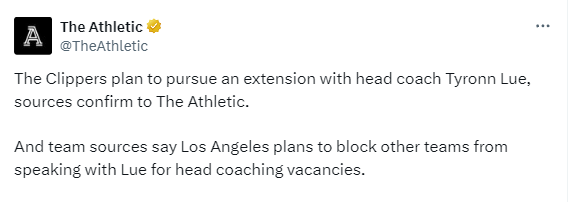 湖人已经开始物色新的主教练,据报道,快船主帅泰伦-卢、独行侠主帅基德、JJ-雷迪克、布登霍尔泽、勇士助教阿特金森等人都是湖人新帅的潜在人选;不过快船计划与卢帅续约,据报道,快船将阻止湖人与泰伦-卢就主帅一职进行谈判。