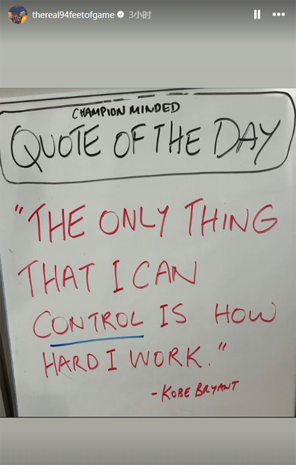 湖人清洗教练组后,菲尔-汉迪借用科比的言论来表达内心的不满,社媒图片中写道;今日名言,“我唯一能控制的就是我有多努力。”——科比-布莱恩特。
