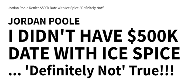 在今年5月初,美媒爆料普尔与女说唱歌手埃丝-史佩斯(Ice Spice冰辣妹)约会时一次就花费了50万美元,后者曾在勇士比赛中为普尔呐喊助威。