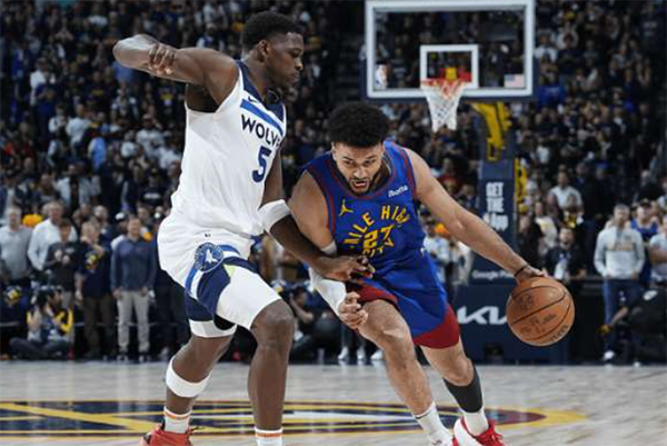 爱德华兹打出攻防一体的超巨级别的表现,据统计,西部半决赛G1,在面对爱德华兹防守时,掘金球员命中率仅为28.6%。