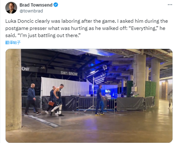 返回更衣室途中,东契奇满脸的疲惫,在新闻发布会上,当被问及身体哪里痛时,东契奇表示:哪儿哪儿都很痛,我只是在场上拼。