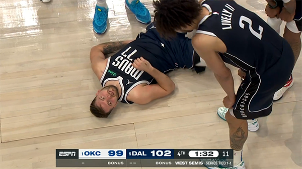 本场比赛,东契奇多次挨揍——第四节被多尔特踢了一脚,空中抢球时被多尔特放倒,卢卡重摔倒地磕到腰部和头部;东契奇还被亚历山大肘击到面部。