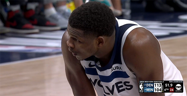 第二节,森林狼2-12开场瞬间落后到15分,见状爱德华兹频频杀到禁区得分,外线追身三分一击即中,可华子带队追到7分后森林狼连续犯错,短短20秒被掘金打出8-0攻击波,穆雷1.6秒抢断命中逆天超远压哨三分;华子单节又拿到12分,半场轰下23分,可森林狼已经落后15分。