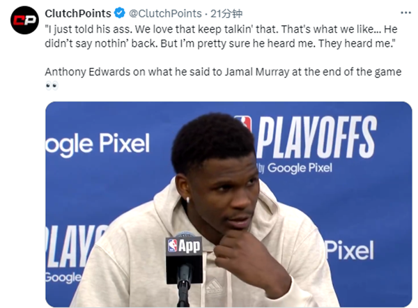 森林狼输球赛后,爱德华兹连续鼓掌,心有不甘太无奈,之后华子和穆雷擦肩而过,两人互怼了几句;森林狼众将沮丧离场,返回更衣室途中,爱德华兹怒扔毛巾泄愤。