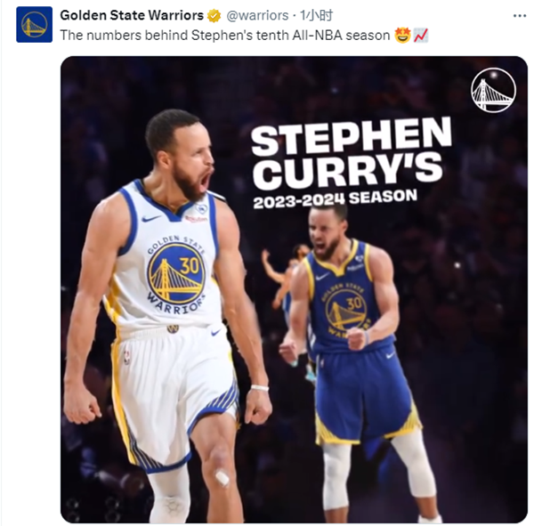 库里发推庆贺入选最佳阵容,勇士将帅:杀手、GOAT 祝贺