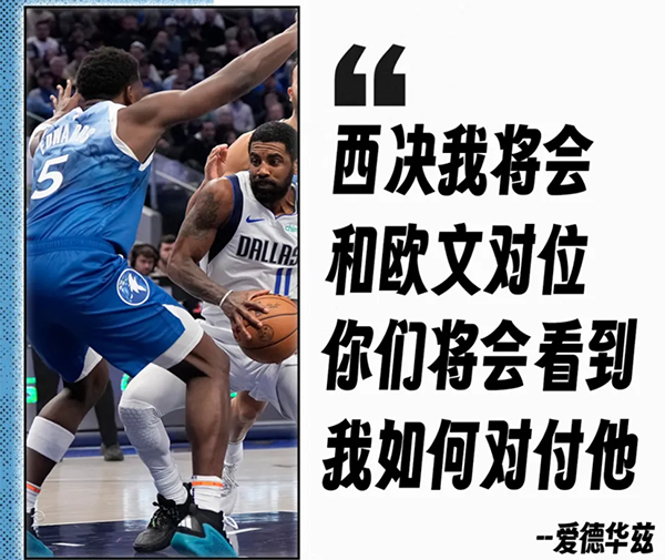 爱德华兹成为森林狼输球的罪人,他的这个失误,甚至有可能作为本赛季西部决赛的走势。西部决赛开始前,爱德华兹放出豪言,会锁死独行侠的欧文,他表示:“我会对位欧文,这将会很有趣。你们将会看到我怎么对付他。”