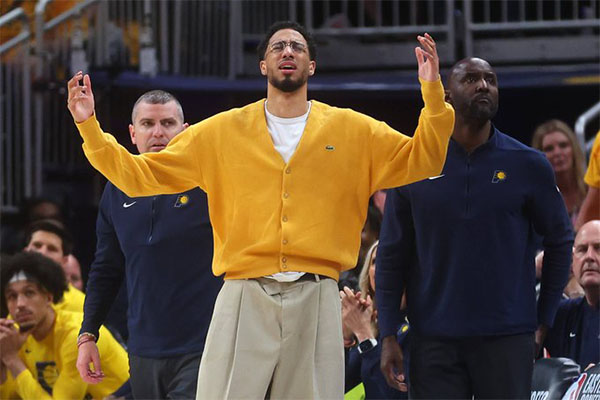 哈利伯顿是在东决G2的一个防守回合中受伤的,因腿筋拉伤提前退出比赛;东决G3,哈利伯顿因腿筋伤势缺席比赛,步行者在一度领先18分的情况下被逆转;东决G4,哈利伯顿因伤继续缺席比赛,无缘参加赛季的生死战。