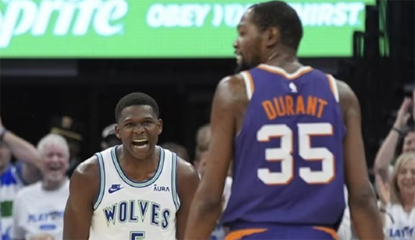 季后赛面对太阳,对手拥有杜兰特这样的历史级巨星,还有比尔和布克,三巨头压阵,最终爱德华兹大发神威,唐斯、戈贝尔也有很好的表现,他们以4-0横扫对手,赢下系列赛的过程荡气回肠,令人看到了这支球队冲击好成绩的希望。