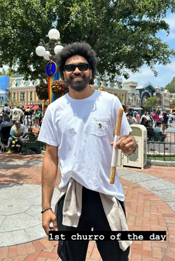 湖人后卫文森特通过社交媒体晒出自己在洛杉矶迪士尼乐园逛吃逛喝的画面,留着爆炸头发型、戴着墨镜游玩,期间文森特一直在吃西班牙油条,吃掉地13根后,文森特发文调侃前队友阿德巴约,写道:13根了,我不吃了。致敬13号本人@阿德巴约。