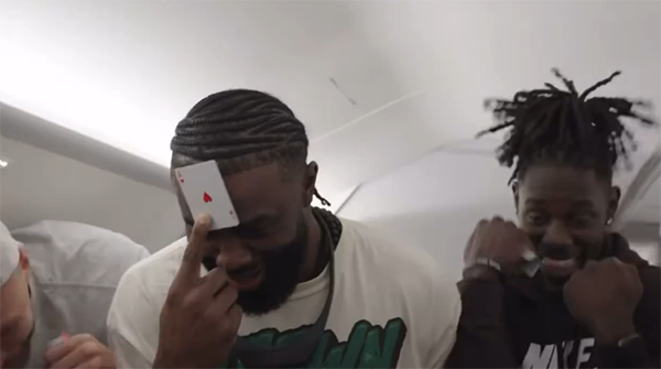 在今年季后赛期间,凯尔特人众球员在飞机上打牌消磨时间,蒂尔曼、凯塔、普里查德和米哈伊柳克坐在一桌洗牌,波尔津吉斯、杰伦-布朗、霍乐迪等人都掏现金下注,期间塔图姆表示自己没带现金,逗笑众人,之后塔图姆让怀特给他下注50美元;赌桌上放了一大堆美金。