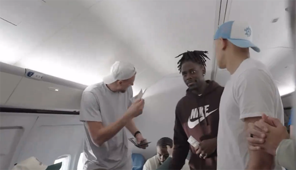 绿军众将小赌一下,玩得就是一个开心,整个飞机上充满了欢声笑语。
