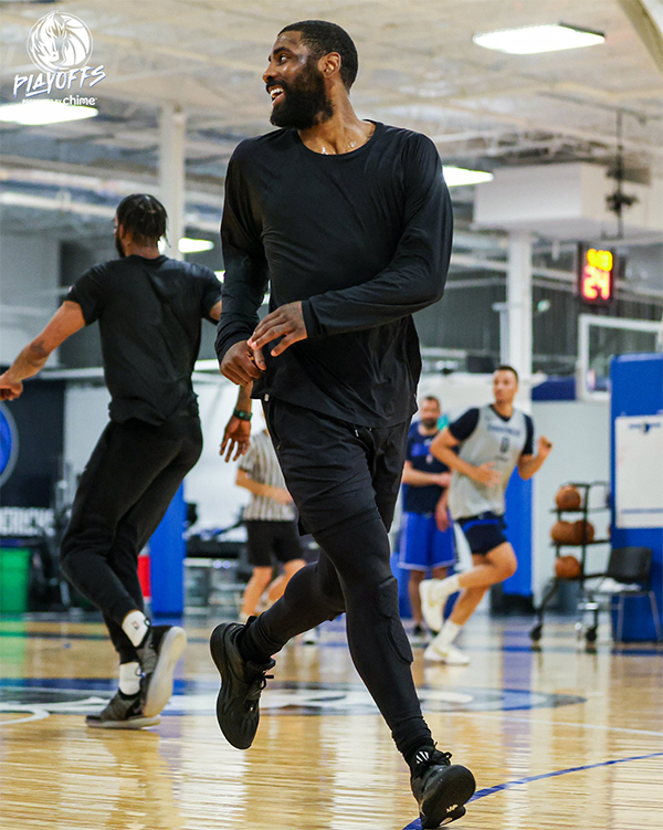 独行侠官方晒球员训练照,欧文身穿一套黑色训练装备,带领球队挥汗备战总决赛,他的衣服早已被汗水浸透了,训练期间,欧文咧嘴大笑十分开心。