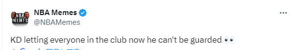 杜兰特在夜店连续投篮引热议,美媒NBA Memes表示杜兰特让夜店里的每个人都无法防守他;美球迷调侃:他真的嫁给了比赛。