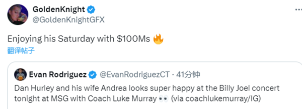 今日赫尔利现身纽约观看演唱会,身穿黑色T恤,咧嘴大笑并且冲着镜头比V,与妻子安德里亚亲密合影;51岁赫尔利现身纽约引热议,湖人媒体表示赫尔利将让康大知道他将执教湖人,湖人记者Golden Knight表示赫尔利带着1亿美元享受周末。