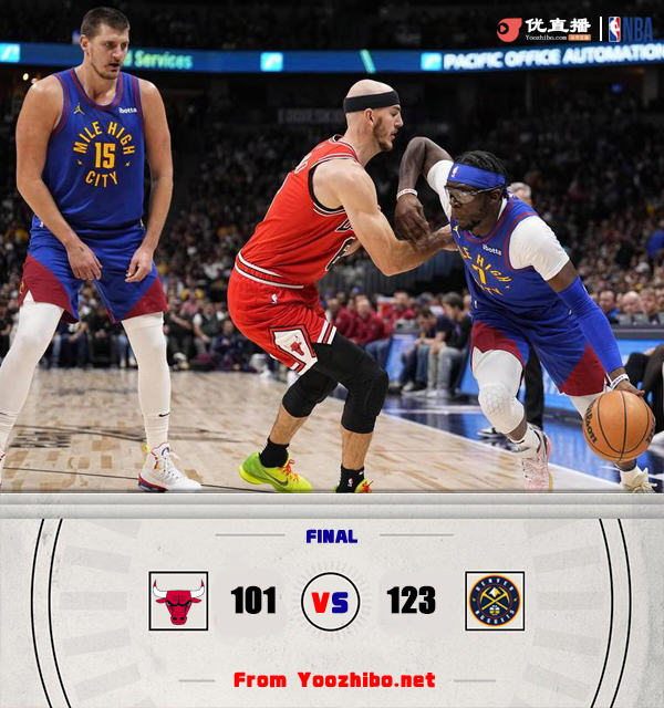 卫冕冠军掘金今日坐镇主场迎战公牛,掘金虽然在客场21分不敌森林狼遭遇新赛季的第一场败仗,但随后回到主场击败独行侠迅速回到正轨;公牛这边进入11月份后的2场比赛全部输球。首节开局双方状态都不太好,主场作战的掘金打了半节时间才拿到11分;整个第一节双方打得不愠不火分差也比较小;次节双方开局迎来一波高命中率的对攻,双方10个回合里虽然出现2次失误,但其余8个回合全部打成堪称弹无虚发,不过公牛在这一节稍胜一筹并拿到2分领先。休息归来掘金终于找回卫冕冠军的实力,高强度的防守外加高效的攻防转换,他们在不到8分钟的时间里轰出26-6的攻势直接确立起接近20分的优势,这之后掘金牢牢控制比赛,末段波特和戈登联手飚进3记三分为比赛盖棺定论。最终,掘金主场轻取公牛,并送后者3连败。